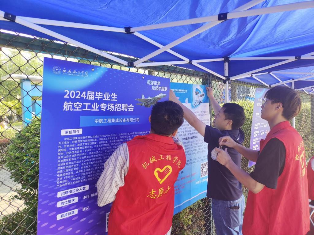 9月13日上午,2024届毕业生航空工业专场招聘会在我校阎良校区灯光球场顺利举办。集团所属中航航空电子有限公司,陕西宏远航空锻造有限责任公司,江西洪都航空工业集团有限责任公司等34家企业前来招贤纳士。我院青年志愿者们展示青春风采,助力招聘会顺利举办,成为一道亮丽风景线。