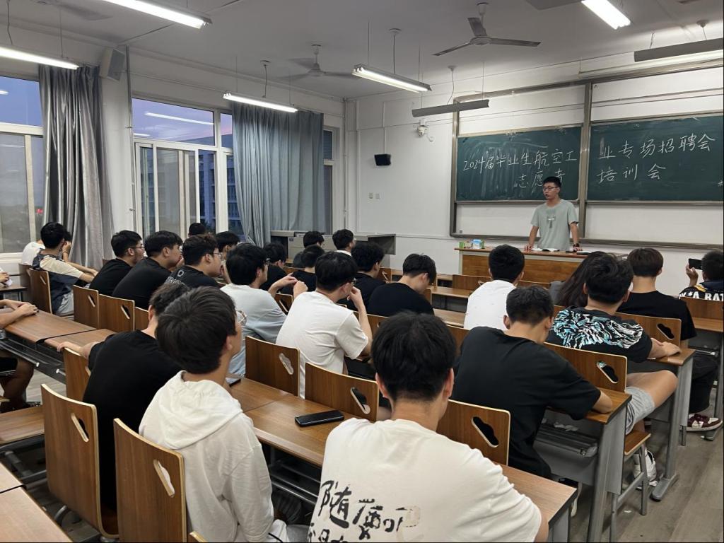 在接到参与本次招聘会志愿服务活动通知后,我院青年志愿者中队高度重视,积极做好组织动员工作,精心选拔志愿者,落实志愿服务管理和保障工作各项细节。为保证招聘会有序进行,9月12日下午7点,我院组织志愿者30余人在阎教楼1434教室召开了“2024届毕业生航空工业专场招聘会志愿者培训会”。会议主要向大家指出了本次校园招聘会的重要性以及招聘地点与时间。根据招聘单位的信息及分布,志愿者们明确分工,分组部署工作计划,强调志愿服务过程中同学们需要注意的时间地点和重要事项,做好维护招聘会秩序、展现精神风貌等工作。