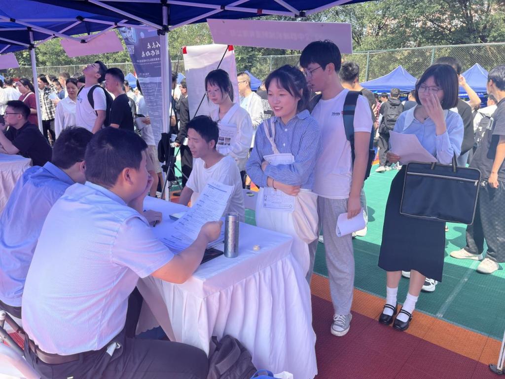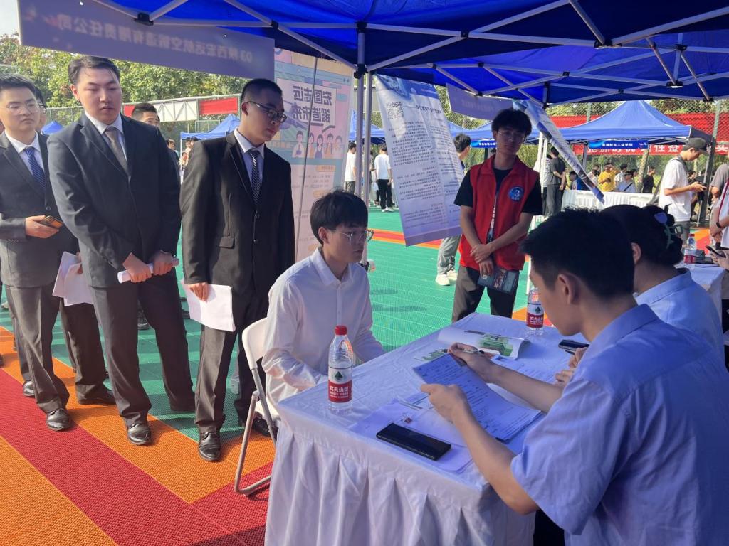 招聘会人流量逐渐增加,毕业生拿着简历在各企业中找寻自己心仪的单位,招聘会工作秩序井然。志愿者们逐渐忙碌起来,场内的志愿者随时解决用人单位的需求,为他们提供签到、指引等服务。他们毫不慌乱地维护着现场秩序,烈日炎炎下,汗水浸湿了衣服,但他们仍然微笑着以饱满的热情迎接每一位学子,用实际行动展示着青春的活力和担当,向企业展示着学校青年大学生志愿者的良好风貌,为招聘会的顺利进行提供坚实的保障。