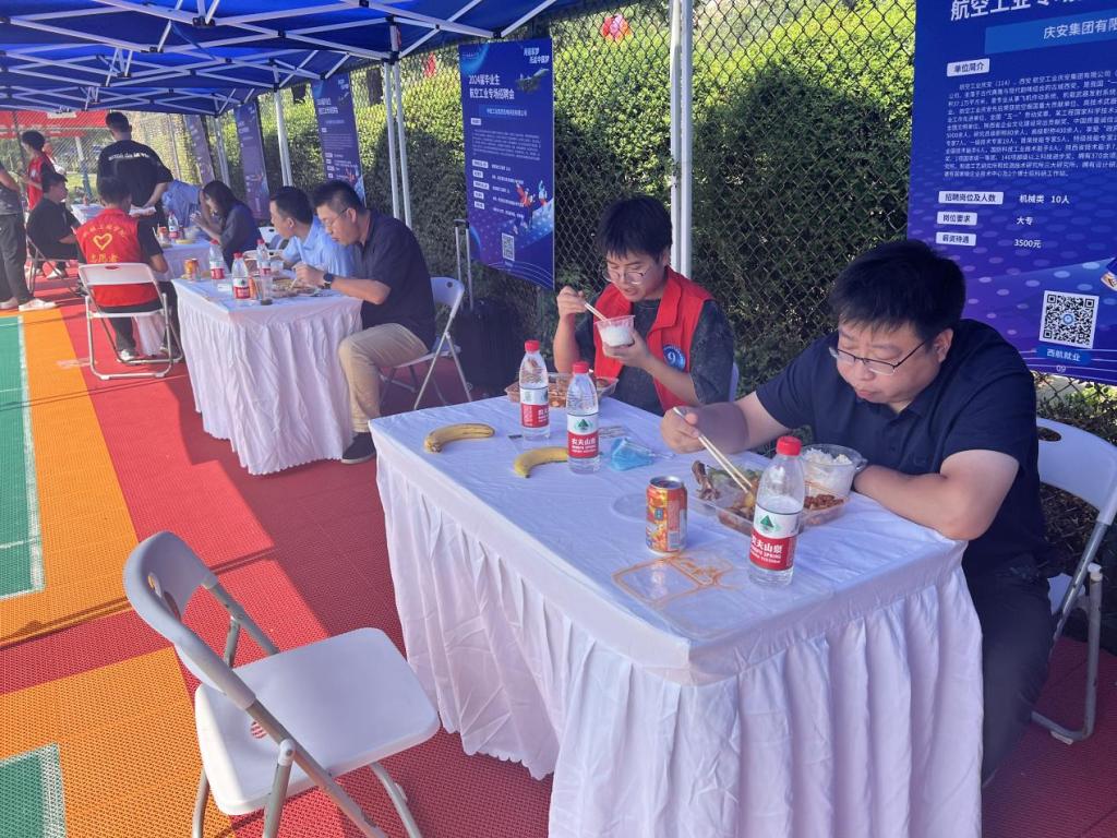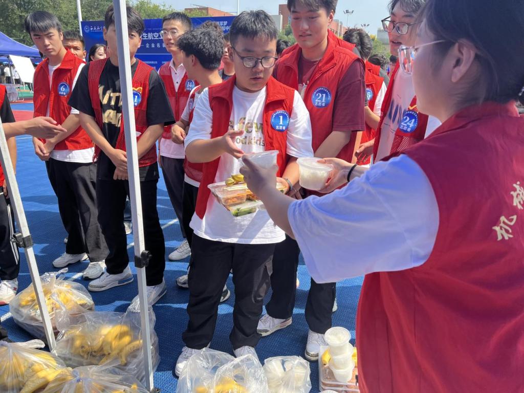 招聘会期间,志愿者们身穿红色马甲,忙碌的身影穿梭在各个角落,成为西航一道靓丽的风景线。他们吃苦耐劳、尽职尽责、热情服务,充分展现了“奉献,友爱,互助,进步”的志愿服务精神,得到了用人单位的高度赞扬,提升了西安航空学院服务社会的良好形象。学校也贴心为企业及志愿者们提供爱心盒饭,包含水果及饮料、矿泉水,给志愿者们补充体力,稍作休整为接下来的工作加油蓄力。