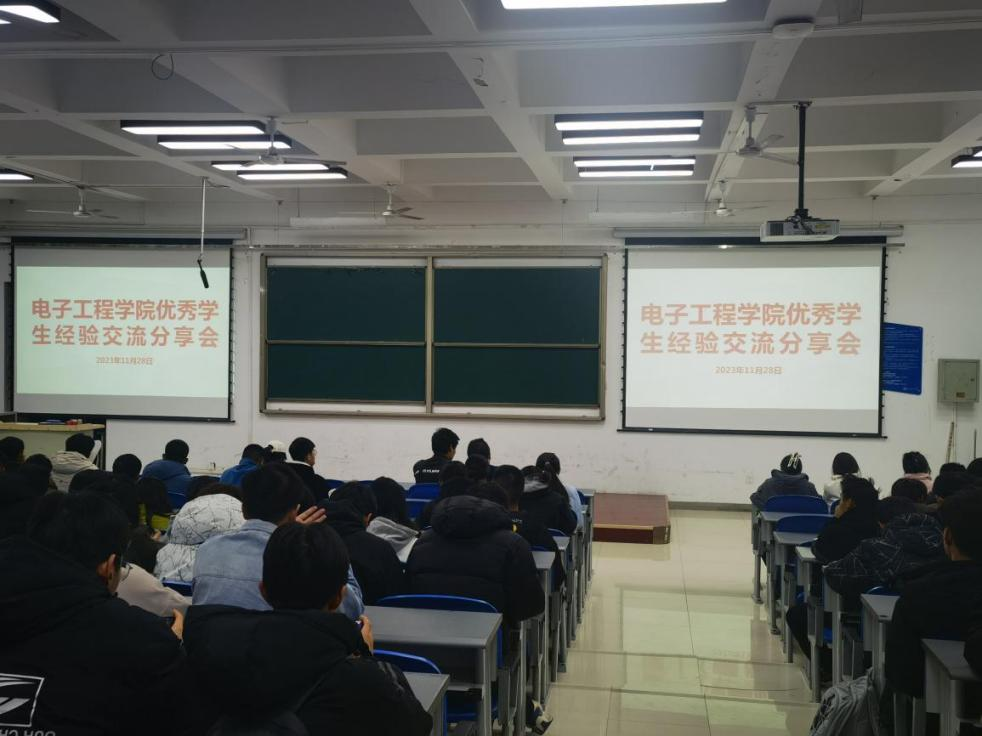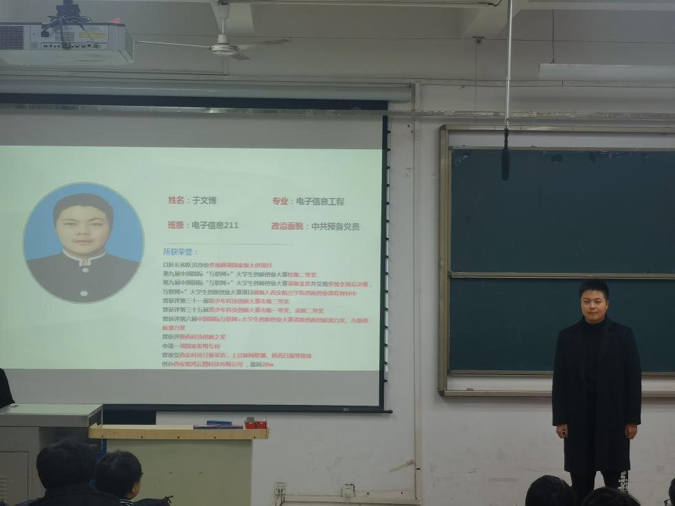 为了帮助同学们更好地树立专业自信,进一步激发学习热情,明确学习目标,合理规划大学生涯,电子工程学院于11月28日下午在阎良校区阶梯二教室开展优秀学生经验交流分享会。活动邀请到2022-2023学年国家奖学金获得者刘锐,第九届中国国际“互联网+”大学生创新创业大赛省级金奖获得者于文博,第十三届和第十四届“蓝桥杯”全国软件和信息技术专业人才大赛陕西赛区省级一等奖获得者曹雄同学做经验交流分享。本次分享会由辅导员焦登宁老师主持。