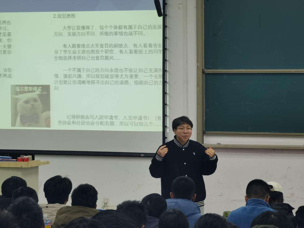 活动伊始,刘锐同学以思想入手,从学习出发,分享社会实践和学科竞赛对于大学生活的实际意义,同时对我院学生参与度较高的学科竞赛进行简要介绍,鼓励同学们大学期间努力培养自律和规划能力,强调勇于试错、敢于探索才是拓宽思路的有效方法。
