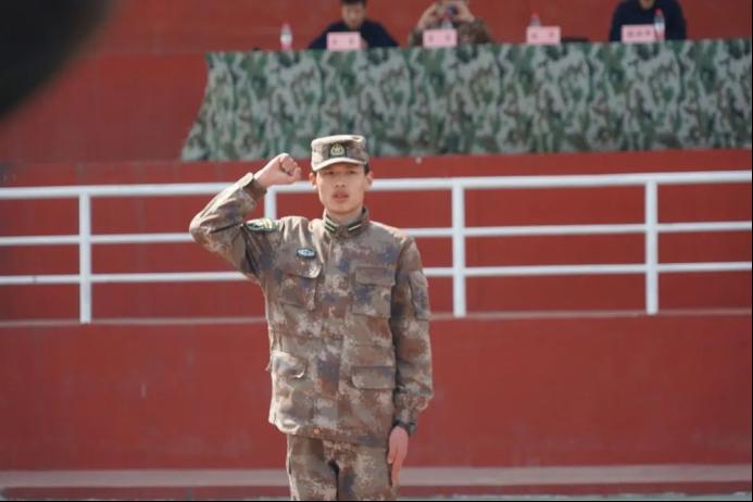 仪式第三项,由中队长段小研带领全体新学员宣读士官生誓言。斗志昂扬固我钢铁长城,铿锵誓言谱写青春华章。