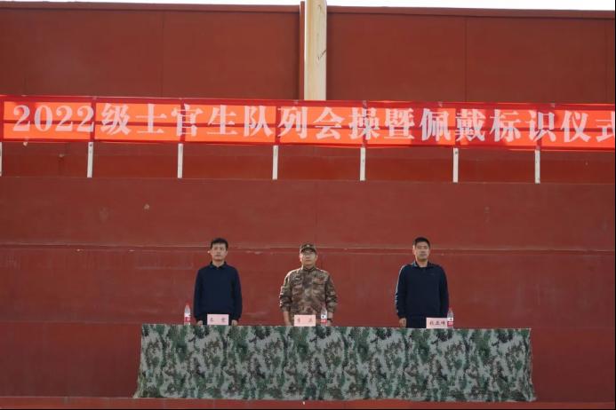 砺兵振旅,淬炼精兵。士官学院为检验新学员的训练效果,进一步强化新学员的集体意识与纪律意识,3月3日下午,在田径场举行“2022级士官生队列会操暨佩戴标识仪式”。由学院党总支副书记李庆、军政教官张亚峰、秦震参加活动,全体新学员以昂扬饱满的激情接受检阅。