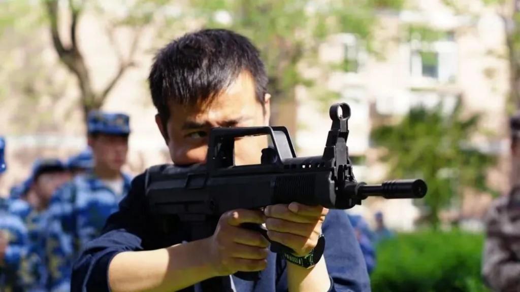 实战必先实训,实训必有实效。秦震教官为参与本次模拟打靶训练科目的学员讲解射击要领,并为学员们演示了激光模拟装置的操作方法及正确的持枪方式,“肩膀定托,三点一线”,从持枪、瞄准、射击等方面为学员们进行示范教学。