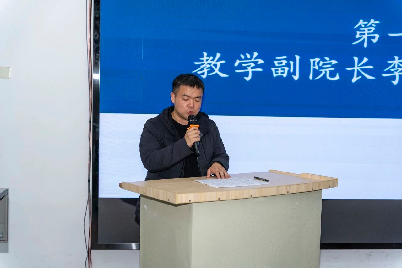 副院长李兆作动员讲话。首先解读审核评估的核心指标,明确评估对学院教学质量提升的关键作用;随后从“学生是审核评估最大受益者”的角度,从四方面阐述了评估与学生的关联——鼓励同学们主动学习评估手册,同时提醒大家关注评估期间的各项注意事项,以积极状态参与到评估工作中。