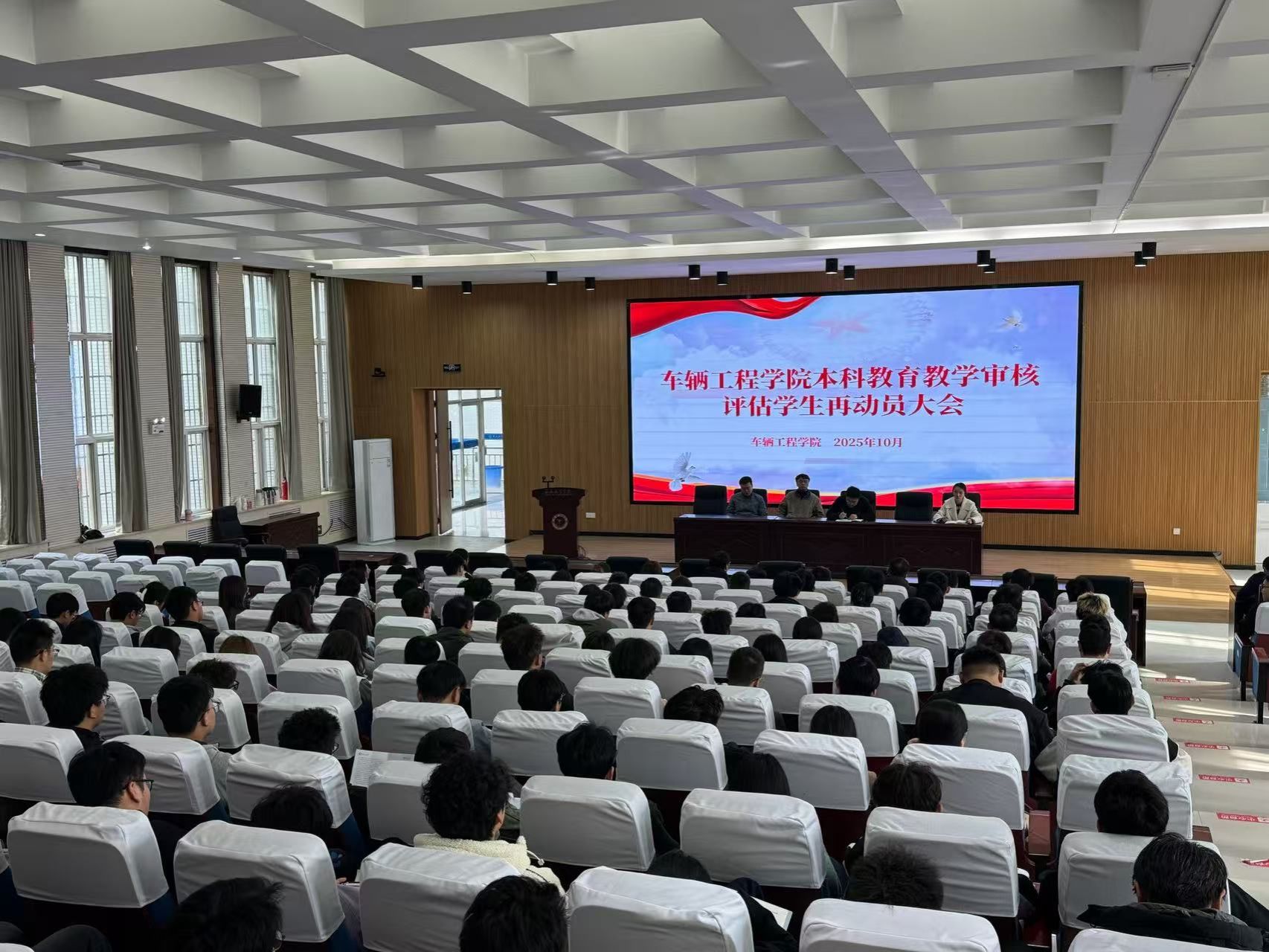 为全面落实审核评估各项要求,明确工作重点,凝聚师生合力,车辆工程学院10月31日12:30在阎良校区报告厅召开教育教学审核评估学生再动员大会。车辆工程学院党总支书记周小勇、院长赵炜华、党总支副书记刘雨辰、副院长赵坤及学院师生代表参加了本次会议。