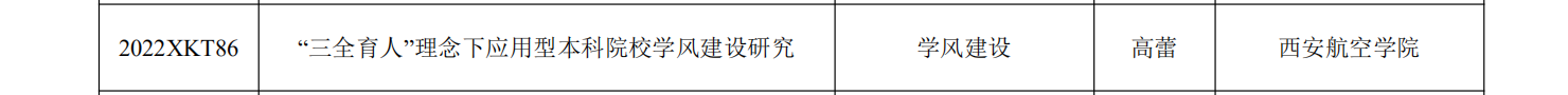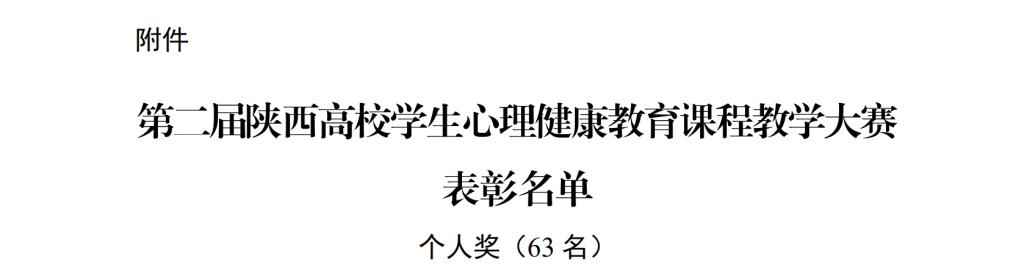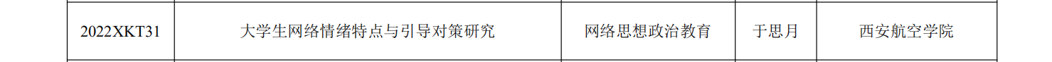 近日,中共陕西省委教育工委公布了2022 年度陕西高校学生工作精品项目、研究课题立项名单和第二届陕西高校学生心理健康教育课程教学大赛获奖单位与个人名单。我校辅导员董娟主持的《“三全育人”理念下“四色”校园文化构建路径研究与实践》精品项目,辅导员于思月主持的《大学生网络情绪特点与引导对策研究》研究课题,辅导员高蕾主持的《“三全育人”理念下应用型本科院校学风建设研究》研究课题,成功获批立项。于思月荣获第二届陕西高校学生心理健康教育课程教学大赛优秀奖。
