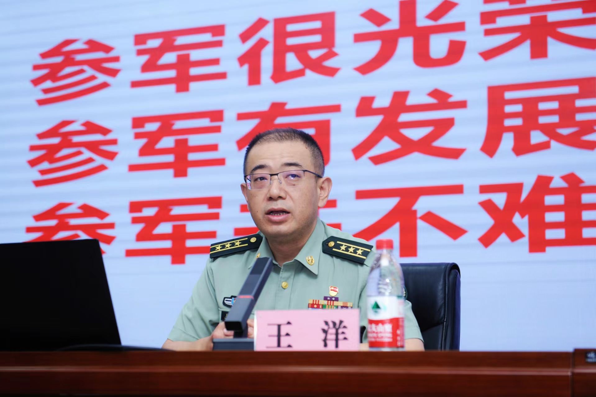 王洋从参军入伍政治荣誉、经济保障、发展前途、成长成才、人生历练、属地政策等方面作了大学生应征入伍宣讲动员,希望我校有志青年积极响应,去绿色军营为我国推进现代边海空防建设,实现强军目标、民族复兴贡献自己的青春力量。