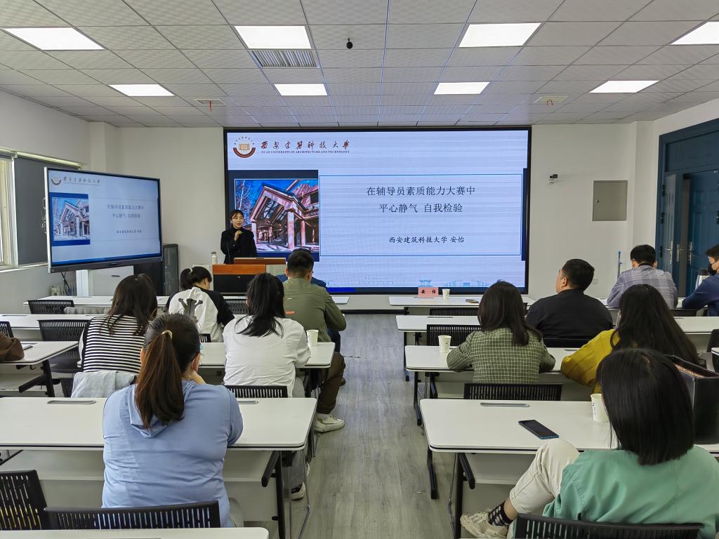 为做好学校第六届辅导员素质能力大赛备赛准备工作。5月11日,我校第十一期“翱翔之翼”学工论坛邀请全国高校辅导员素质能力提升骨干训练营“特别表现奖”、陕西高校第八届辅导员素质能力大赛一等奖获得者、西安建筑科技大学辅导员安怡作《在辅导员素质能力大赛中平心静气、自我检验》专题培训,我校全体一线专职辅导员参加培训。