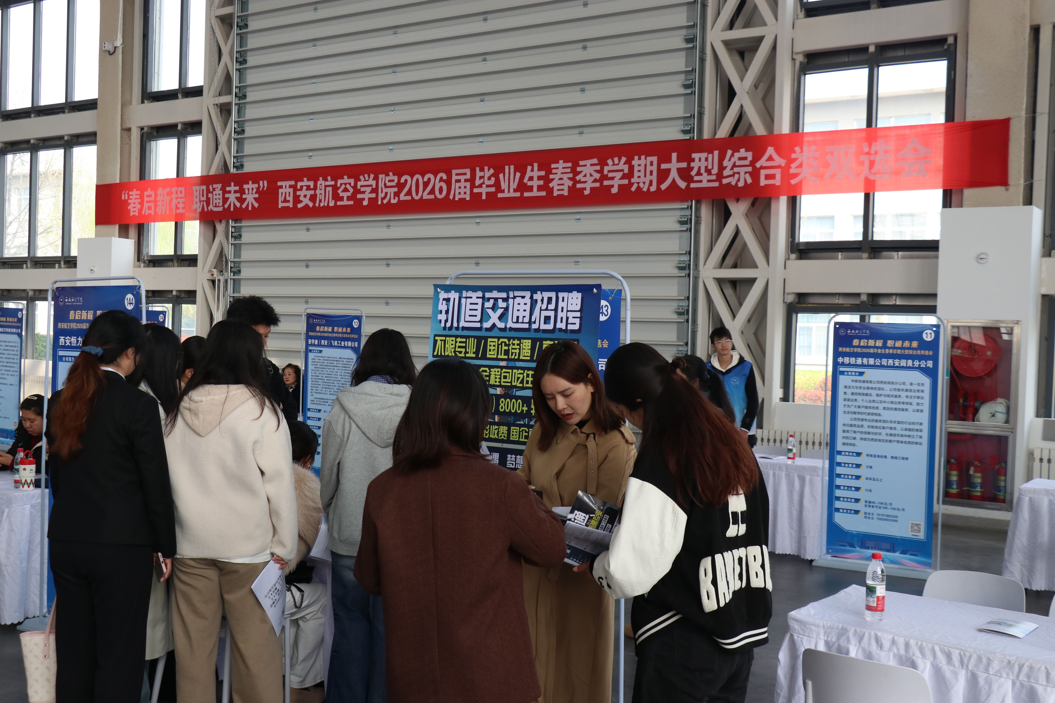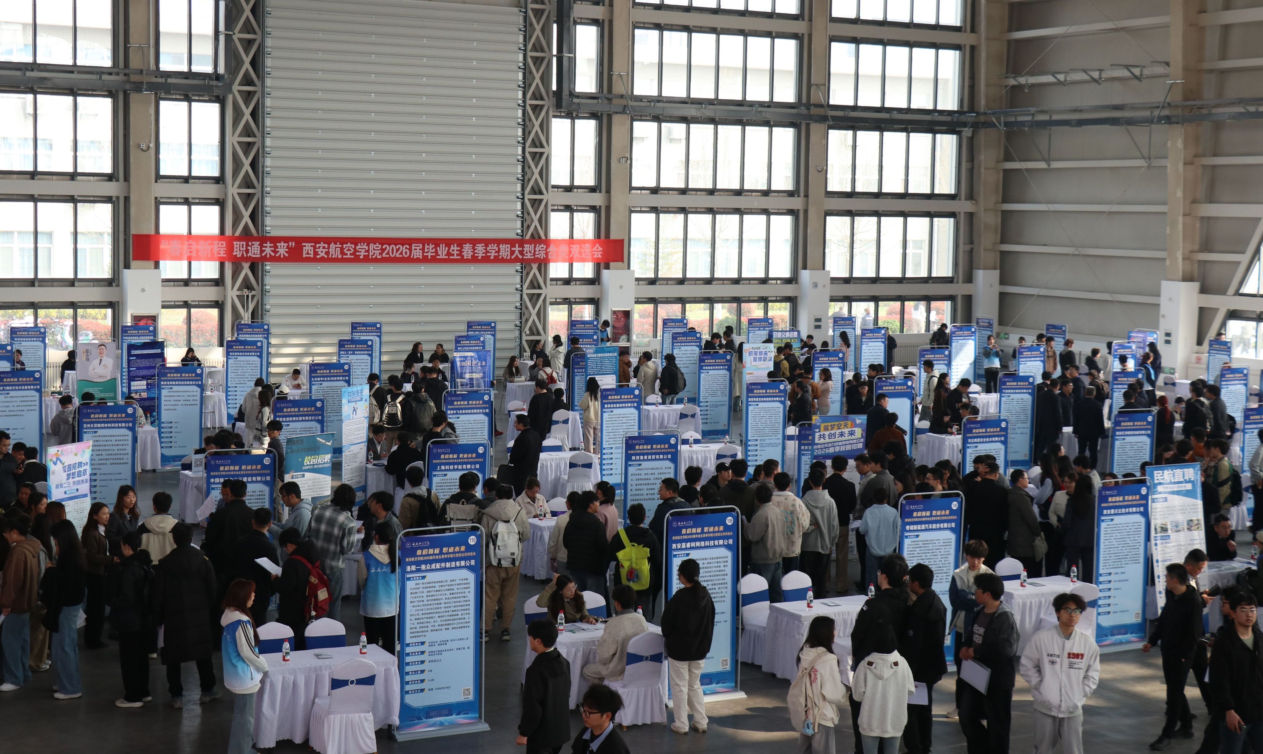 春和景明,万象更新。3月27日,学校2026届毕业生春季学期大型综合类双选会,在阎良校区民航实验实训基地隆重举行。来自16个省份的160余家优质企业齐聚校园,其中国企、外资类企业占比达三分之一,共提供就业岗位3800余个,充分满足毕业生多元化的求职需求。