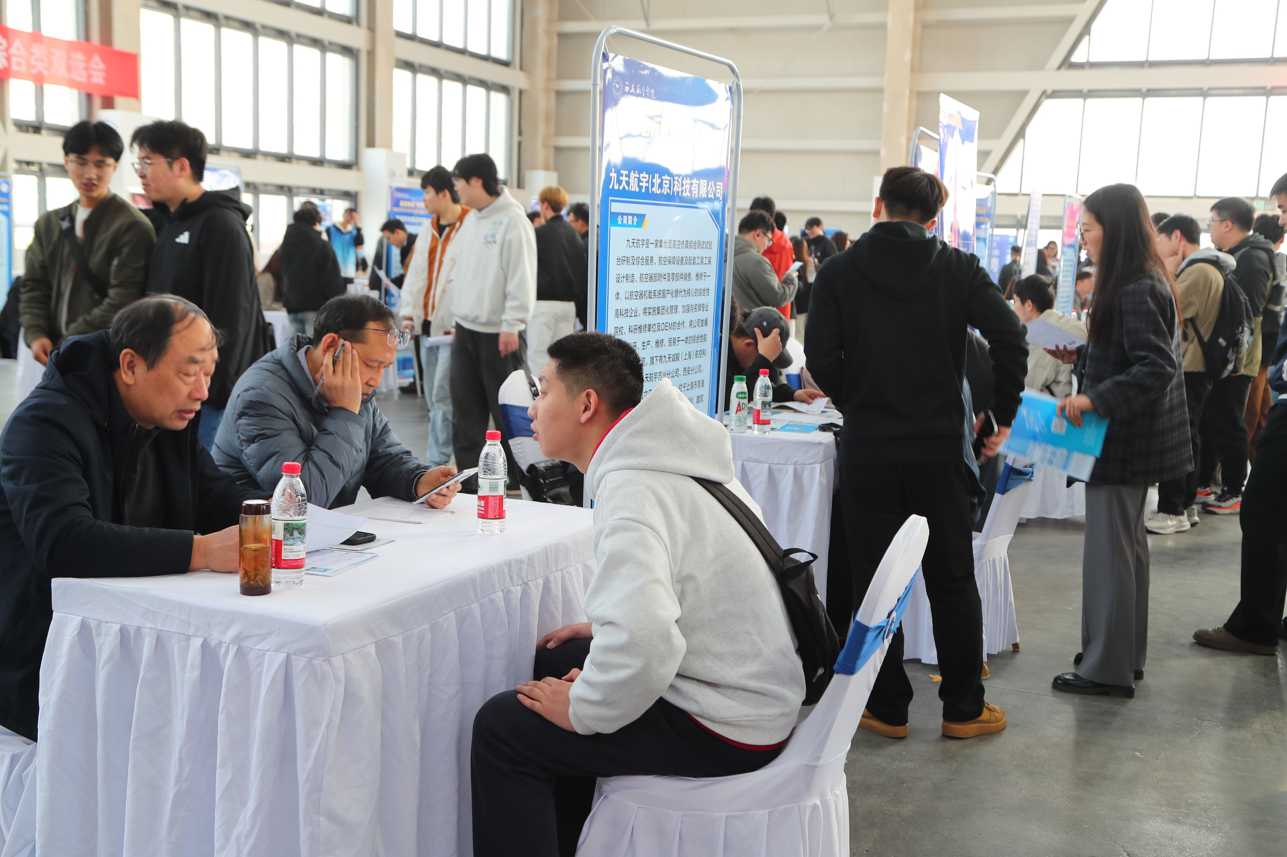 双选会紧扣航空特色,聚焦本省支柱产业人才需求,围绕航空制造、民航通航、低空经济、智能制造等学校优势领域,汇聚了一批与学生专业匹配度高的优质岗位。双选会现场气氛热烈,学子求职热情高涨,企业纳贤诚意十足,各项咨询、测试、面试工作有序进行。陕西省教育厅学生就业与留学服务中心主任相勇、校党委书记祁玉龙、党委副书记宁永录到现场交流指导,倾听企业对学校人才培养工作的意见建议,勉励广大毕业生树立正确的择业观,早日找到心仪岗位。